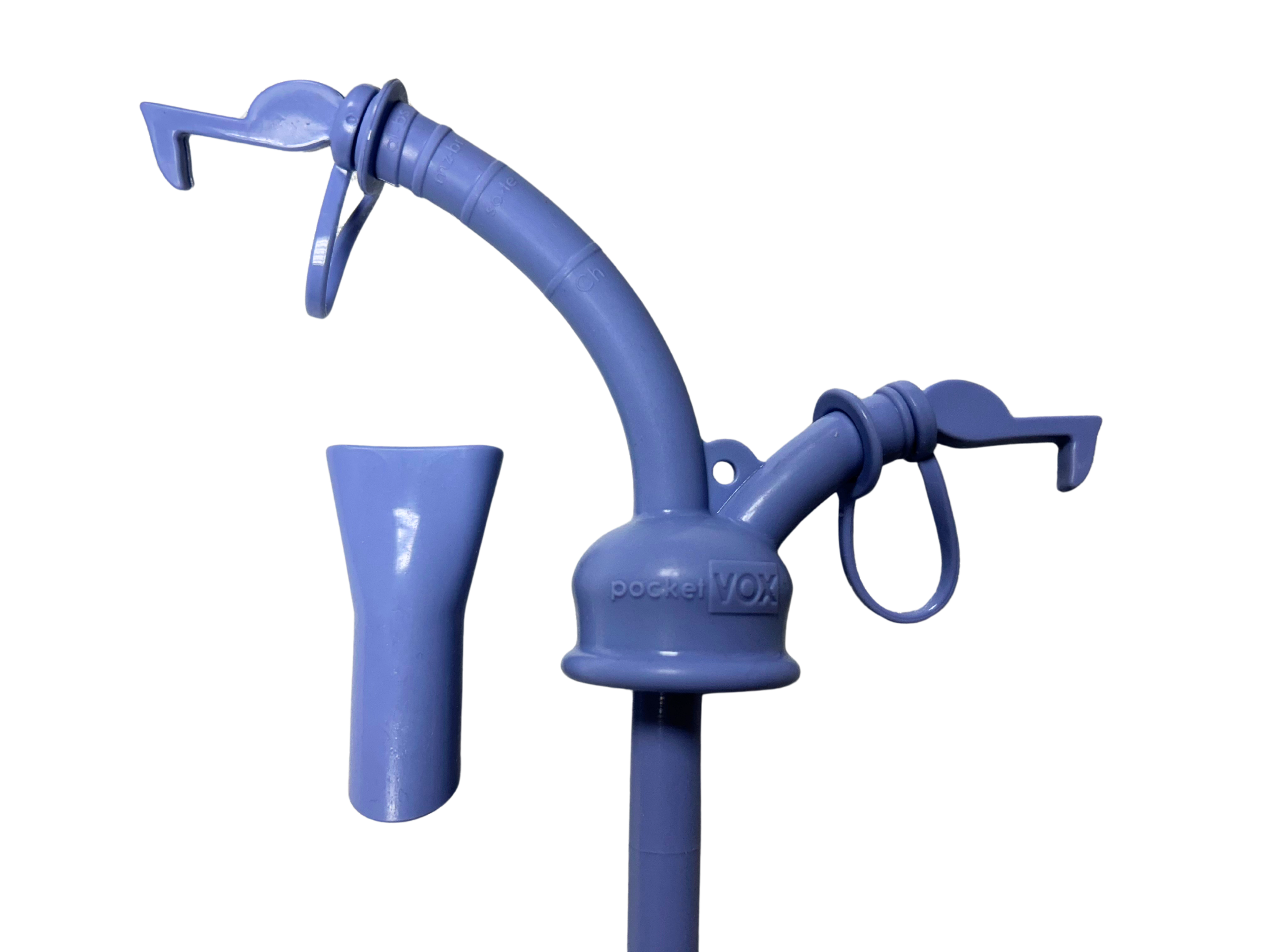 Budowa PocketVox to dwie sylikonowe rurki – jedna z nich to wylot dla powietrza, służy także do inhalacji i nawilżania traktu głosowego. Druga, długa rurka – ta którą zanurzamy w wodzie – służy do ćwiczeń fonacyjnych. Aby zachować dobre ciśnienie należy kontrolować zanurzenie rurki w wodzie – optymalną głębokość najlepiej skonsultować z instruktorem Techniki Terapii Głosu DoctorVox.